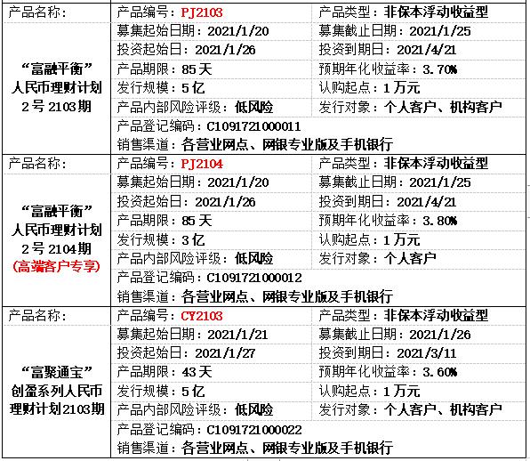 富滇银行人民币理财产品发行公告(2021年1月18日-2021年1月22日)
